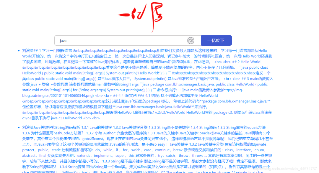 点击第一个搜索结果是我个人的某一篇博文,为了避免资料著作权问题,笔者在es引擎中存放的全是个人的博客资料,
