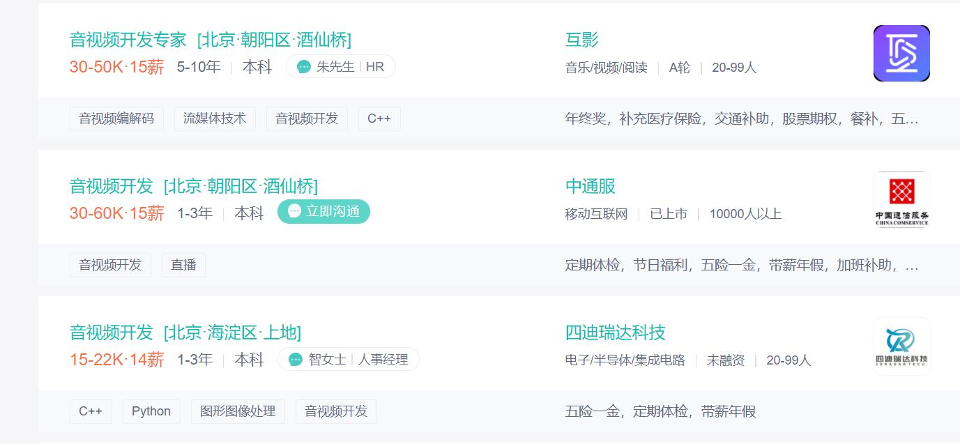 BOOS直聘中,北上广深很多年薪50W-70W的音视频开发岗位,常年招不到人,月薪2-3万大多是刚从事音视频的入门级开发者,