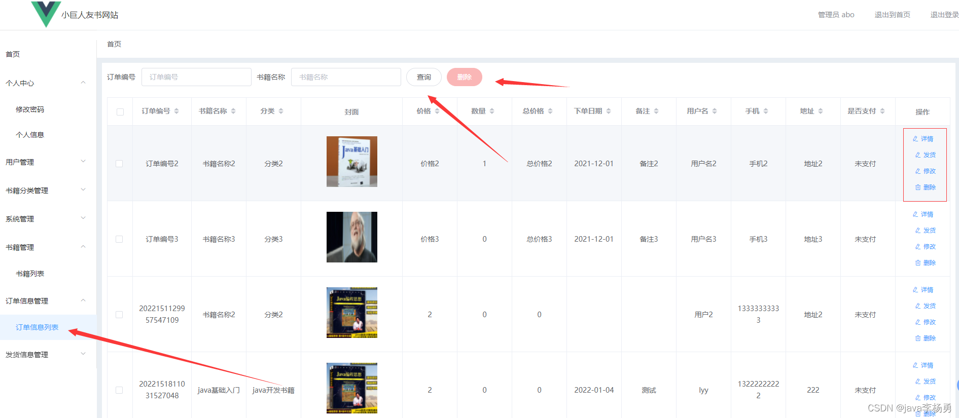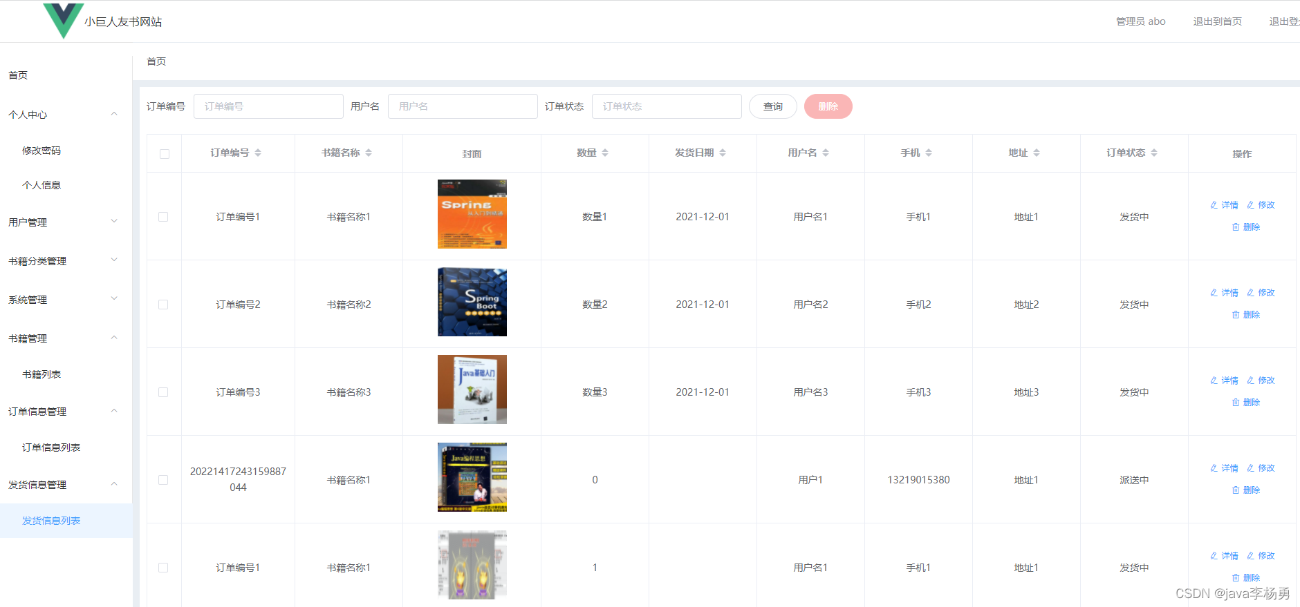 订单管理:管理员可以查看订单信息、对订单状态进行修改、以及发货状态等操作 ,