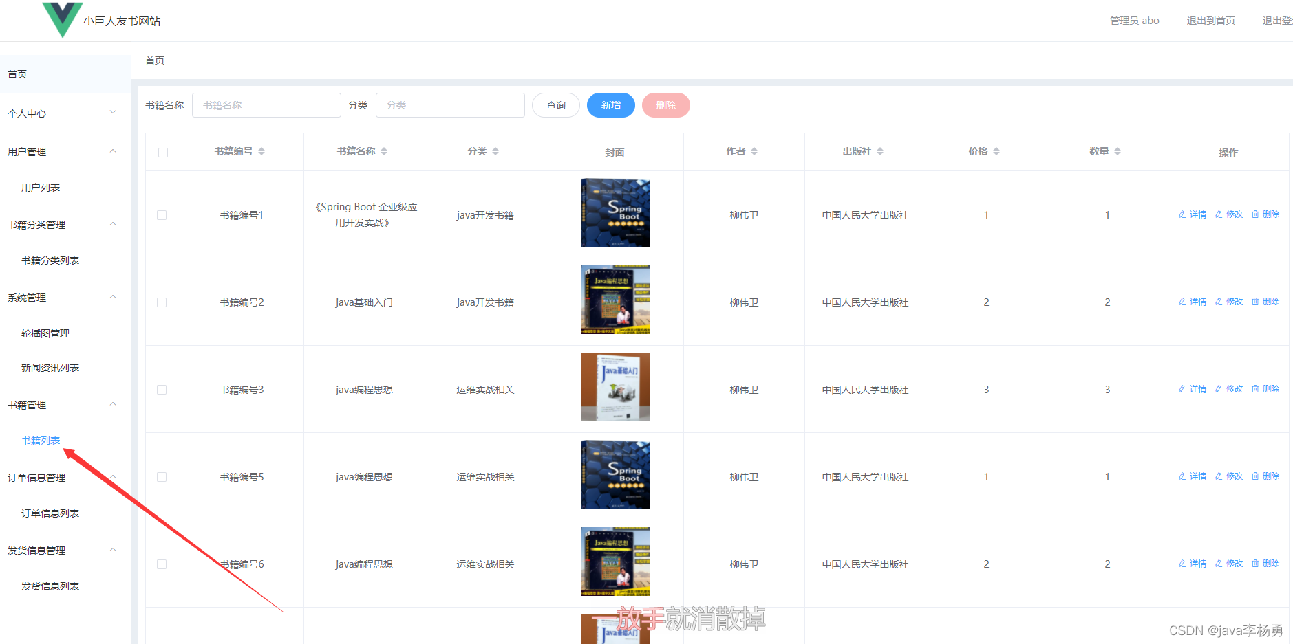 书籍串列管理:管理员可以添加、修改、洗掉和查询书籍串列信息