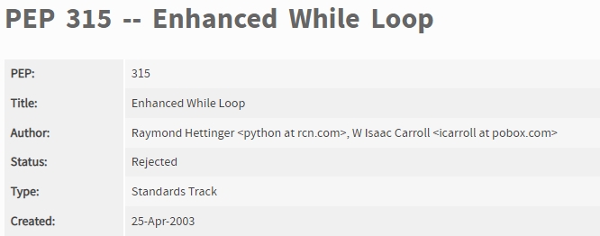 事实上,在 2003 年时,有一个 PEP 提议给 Python 加上 do-while 语法支持: