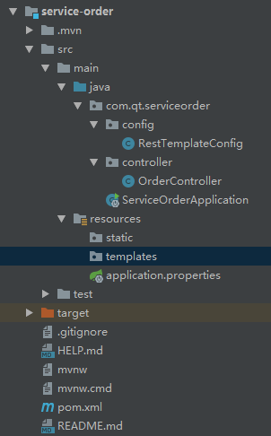 <?xml version="1.0" encoding="UTF-8"?> <project xmlns="http://maven.apache.org/POM/4.0.0" xmlns:xsi="http://www.w3.org/2001/XMLSchema-instance" xsi:schemaLocation="http://maven.apache.org/POM/4.0.0 https://maven.apache.org/xsd/maven-4.0.0.xsd"> <modelVersion>4.0.0</modelVersion> <!-- 继承父工程版本依赖 --> <parent> <artifactId>spring-cloud-alibaba</artifactId> <groupId>com.qt</groupId> <version>1.0-SNAPSHOT</version> </parent> <groupId>com.qt</groupId> <artifactId>service-order</artifactId> <version>0.0.1-SNAPSHOT</version> <name>service-order</name> <description>service-order project for Spring Boot</description> <dependencies> <!-- springweb 启动依赖 --> <dependency> <groupId>org.springframework.boot</groupId> <artifactId>spring-boot-starter-web</artifactId> </dependency> <!-- nacos 服务注册发现(客户端)依赖 --> <dependency> <groupId>com.alibaba.cloud</groupId> <artifactId>spring-cloud-starter-alibaba-nacos-discovery![]()