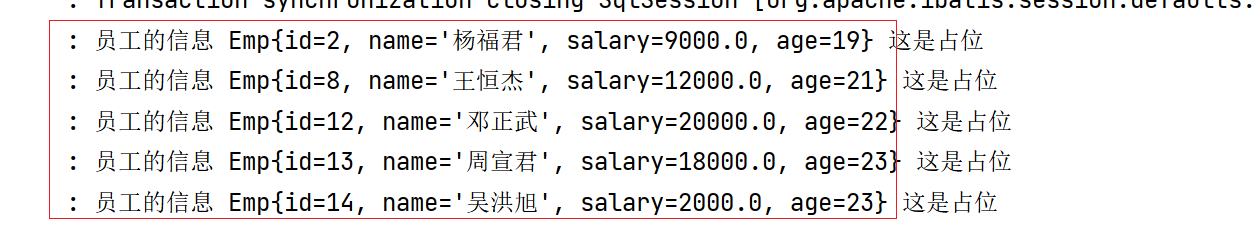 log.info("员工的信息 {} {}",emp,"这是占位");