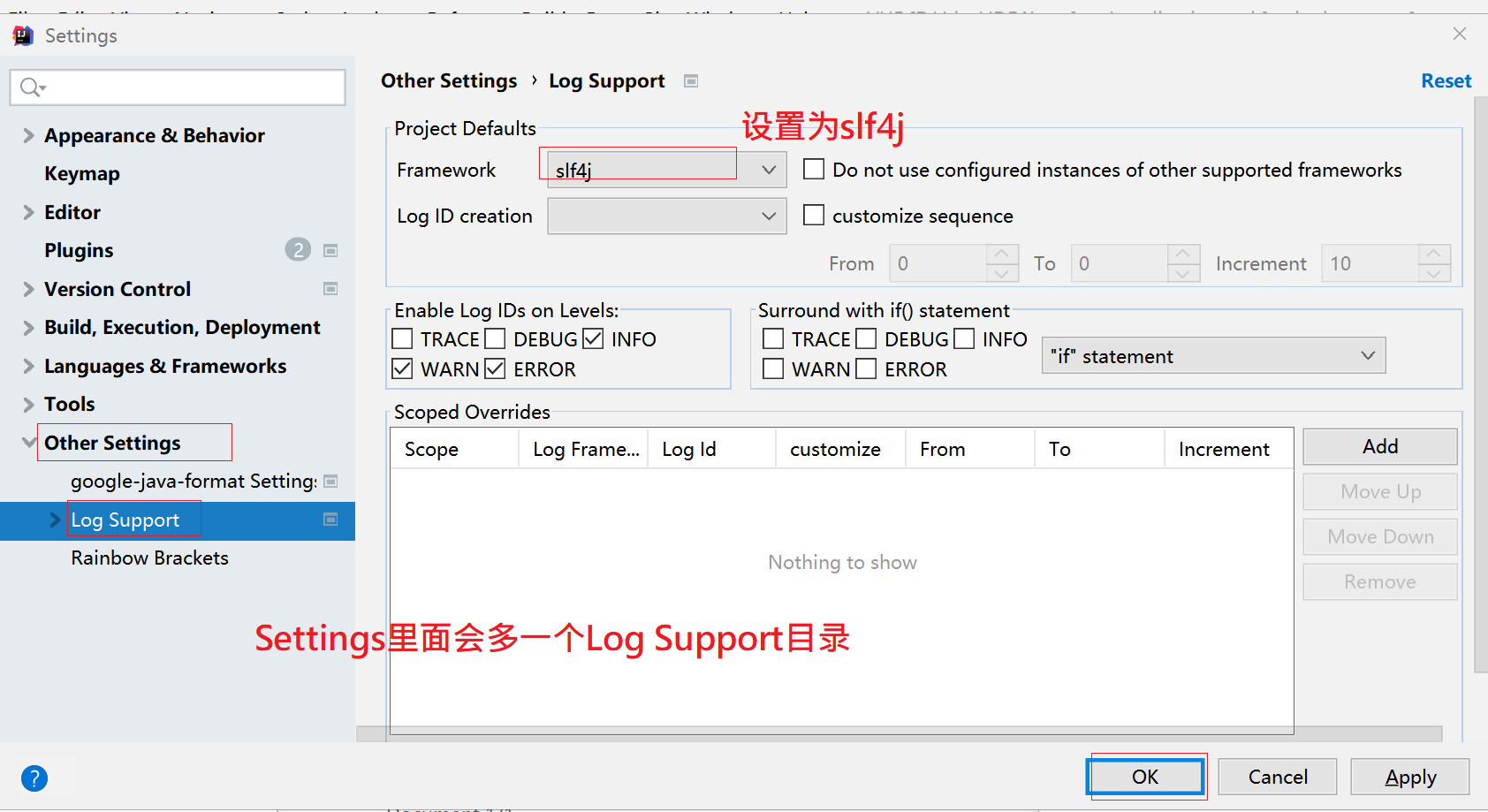 3、Settings里面会新增一个Log Support目录