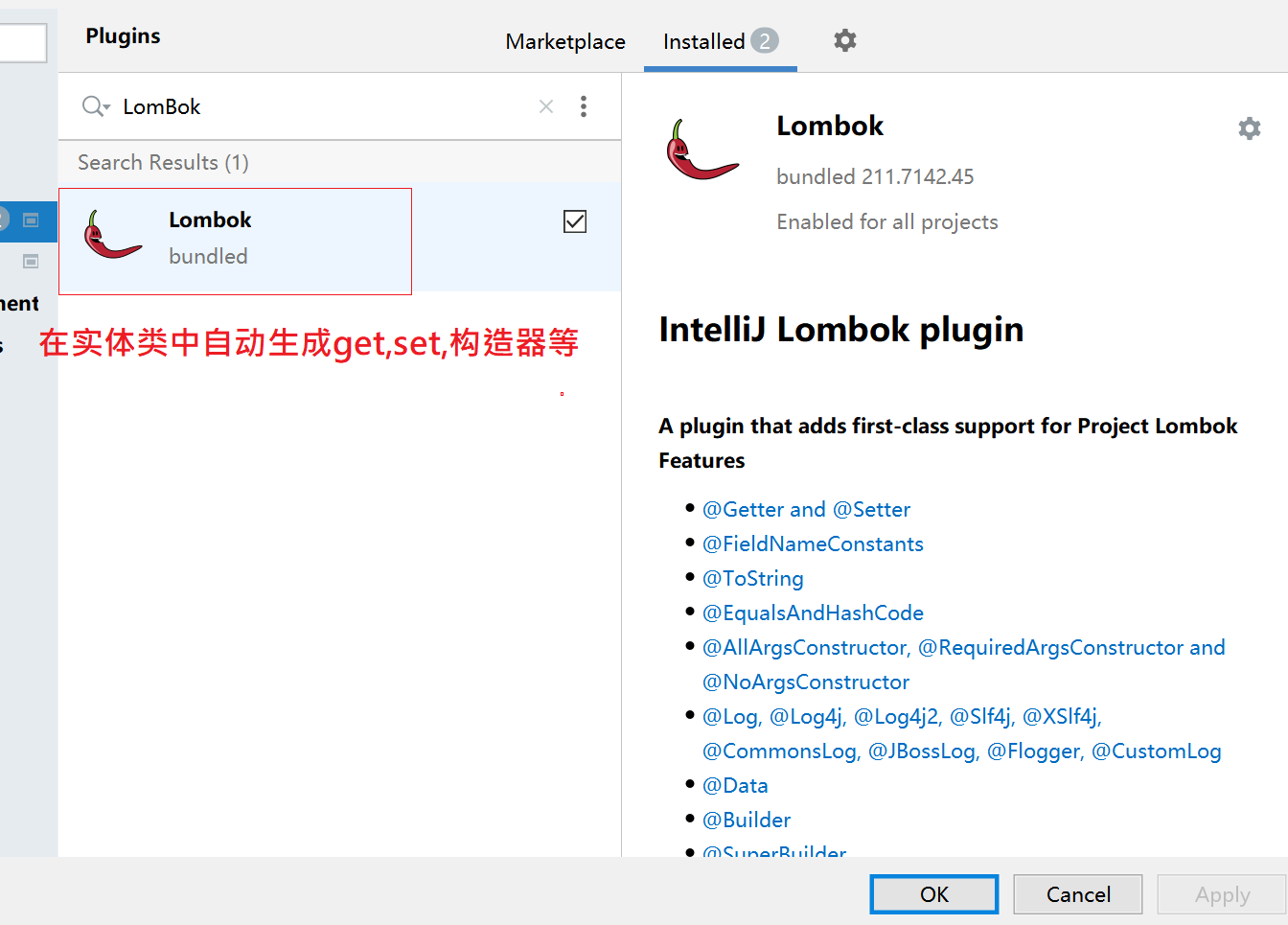 - SpringBoot2.1x之后的版本已经内置了LomBok的相关依赖
