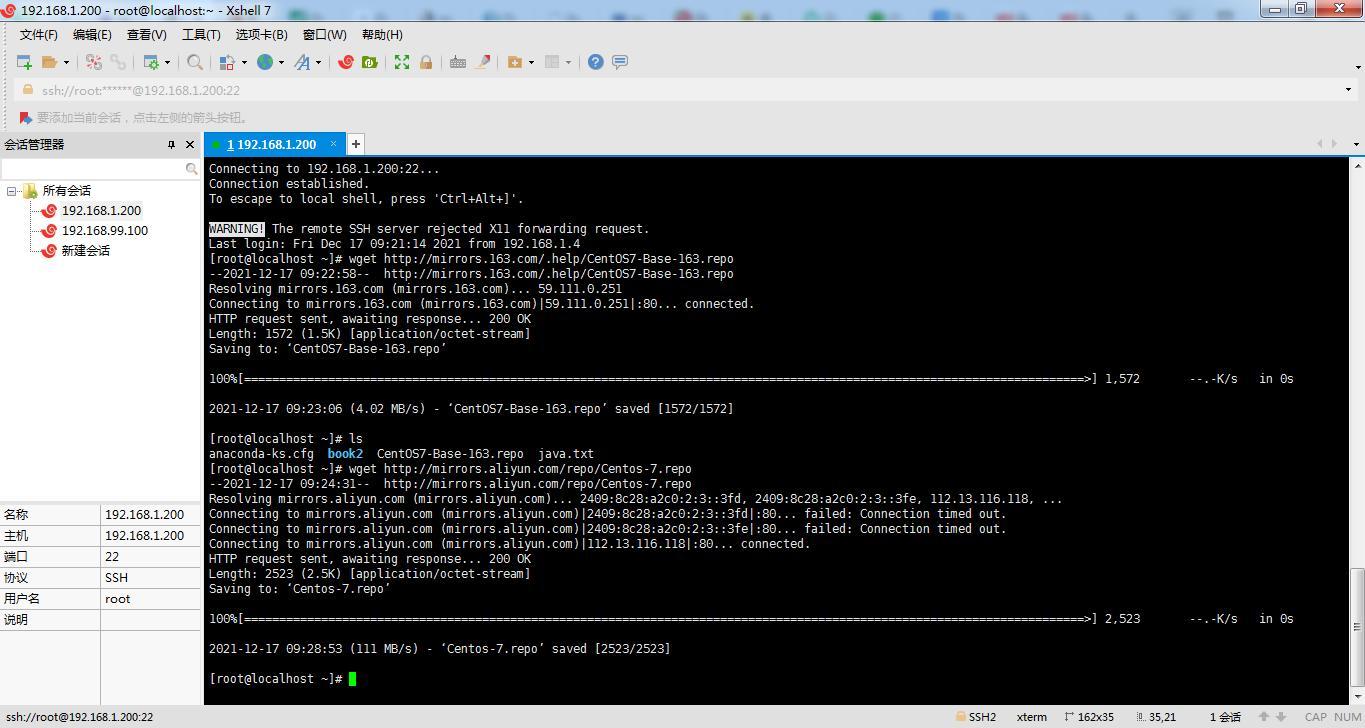 如果以上更新失败,则需要配置国内yum镜像源,具体如下: