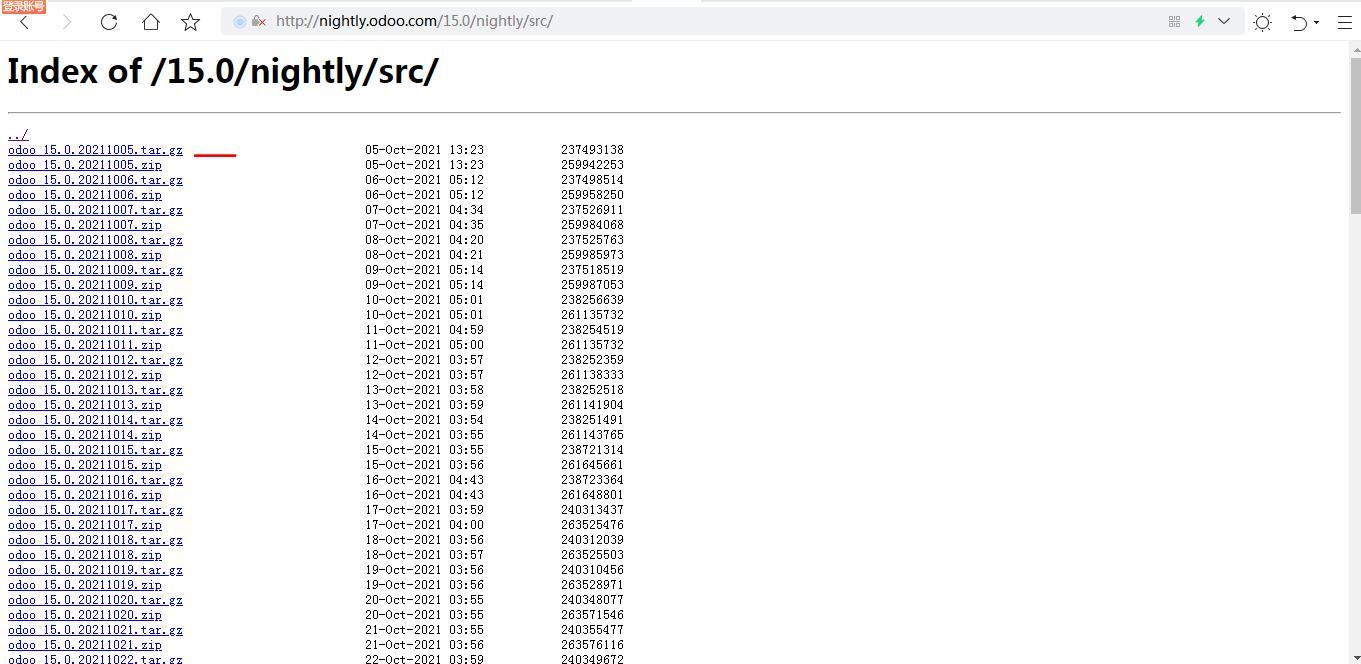 wget http://nightly.odoo.com/15.0/nightly/src/odoo_15.0.20211005.tar.gz