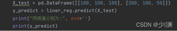 再次进行预测,预测的方法很简单,直接将所给的资料装到一个DataFrame型别的阵列中,然后以这个阵列作为x_test,输出测验的predict即可,