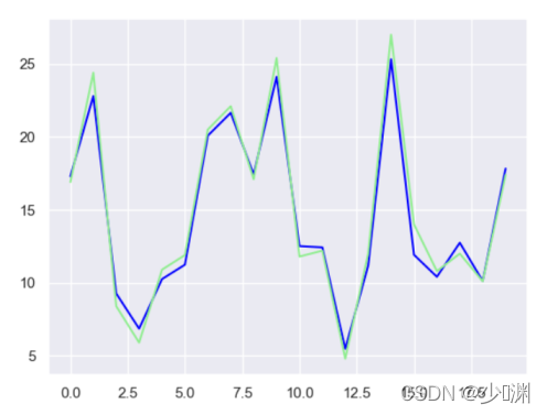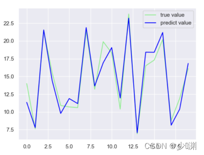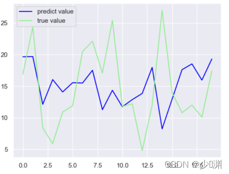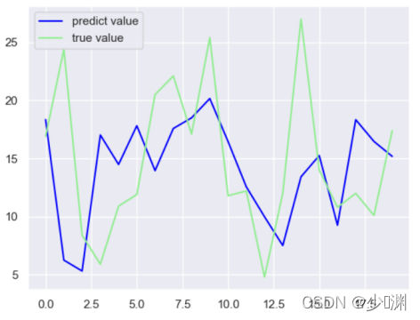 结果非常的amazing啊,比线性回归的的一条直线要拟合不少,然后我们再拿出20个资料进行预测,看看大概的匹配程度如何: