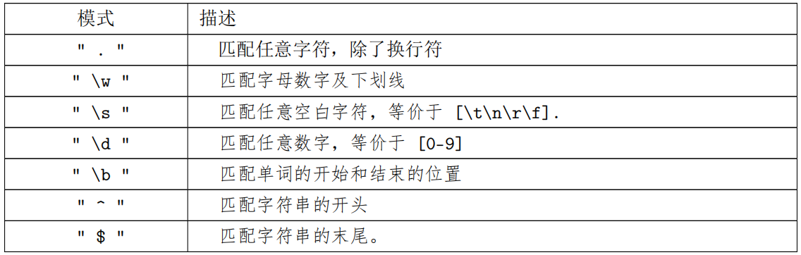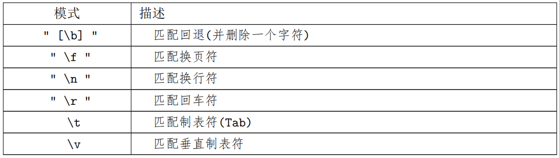 表 5.3: 常见空白元字符