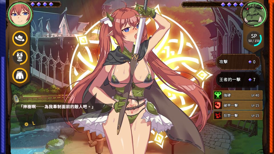▼内容为简单的2D 战斗游戏,单手就能点即操作,运用各种技能击破精灵的护甲教训她们