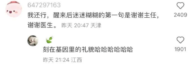 ▼家人们谁懂啊 ▼这麻醉还有催眠效果呢 ▼好像什么都没说又好像什么都说了 ▼这是好兄弟 ▼已经形成甄嬛记忆了 ▼小猫的小蝴蝶 ▼这个绝对是真情流露 ▼愿天堂没有全麻 ▼医生:要不在给你麻醉一下 ▼妈妈是懂时机的 ▼麻醉还不忘科普 ▼要被室友笑四年的程度 ▼天大地大,外卖最大 ▼刻在基因里的礼貌